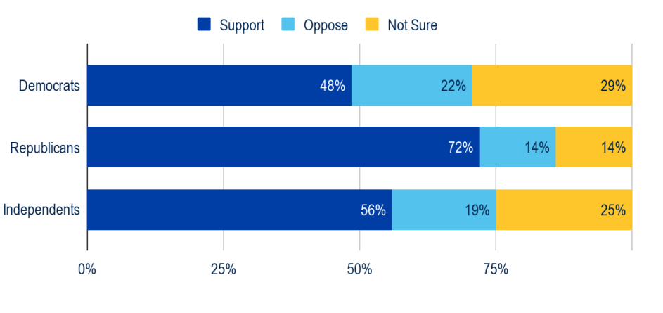A majority of Republican and Independent likely voters support the A-F school report card and almost half of Democrats (48%) do too. At least a quarter of Democrats and Independent voters, however, claimed they were unsure. This could point to a lack of clarity around what it would actually look like for Missouri constituents if this bill is passed into law. For this reason, it is critical that schools, parents, and teachers are informed about which student outcomes will be considered in letter grade calculation.