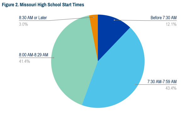 Later school start times have many benefits. The American Association of Pediatrics (AAP) found that a high school start time before 8:30 AM is a key contributor to insufficient sleep in adolescents. Furthermore, the AAP explains how early school start times interrupt the circadian rhythm of students and the damaging effects of chronic sleep loss. Currently, only 3 percent of Missouri high schools begin class at 8:30 AM or later.